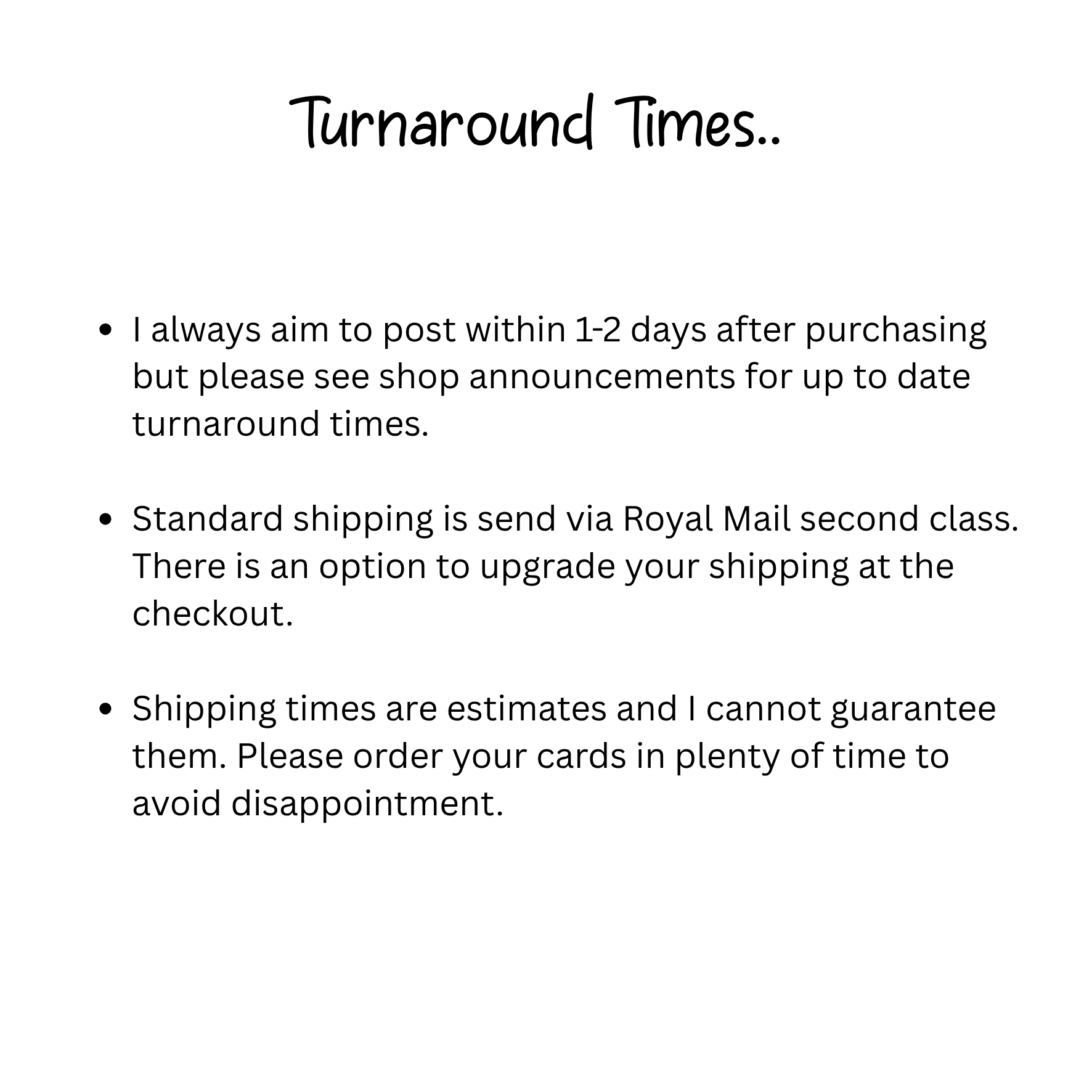 No returns on personalised items.